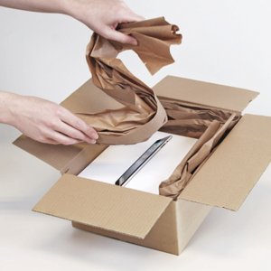 The FillPak system converts fanfold kraft paper at a high speed into a PaperStar™ configuration that maximizes volume, for fast and efficient void fill. Single-ply fanfold kraft paper allows the system to operate at high speeds with virtually no down time. The system can fit over any conveyor system to dispense void fill material directly into the box, making it extremely efficient for random applications. The unique design also allows users to stack and adhere six bundles of paper to maximize up-time and throughput.