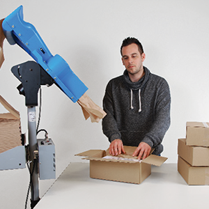 The FillPak® Table Top converter forms 38 cm. single-ply, fanfold kraft paper into a PaperStar™ configuration that maximizes volume, for fast and efficient void fill material to protect products in shipment. Place a FillPak TT at multiple packing stations to maintain packing efficiency while minimizing material cost and usage. FillPak TT is easily operated by a foot pedal and dispenses void fill material directly into a box, allowing for maximum throughput.