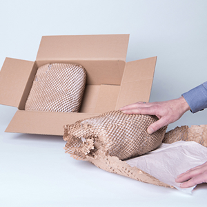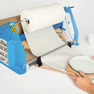 Geami WrapPak® is the combination of a patented die cut kraft paper with a tissue interleaf paper. The Geami WrapPak Manual converter expands the die cut paper to a 3D honeycomb structure that when combined with the interleaf tissue provides a unique wrapping product. By locking the angled cells together, items are firmly wrapped and no tape is needed. Designed as a manual system, the Geami WrapPak M does need electricity, making it the perfect solution for mid-volume applications.