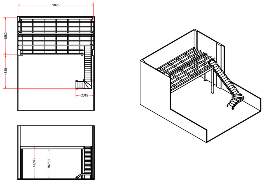 - Design supply and install office below platform with aircon, lighting and electrical points